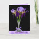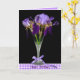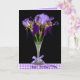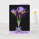 buquê de íris roxa em material de vidro a preto com gingham checado na fronteira para o aniversário