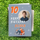 Cartão de Aniversário Feliz de Cartoon de Captura de Futebol. Cartão de aniversário divertido e moderno. Apresentando uma ilustração ousada de um futebol e capacete em laranja e cinza. Adicione a sua foto, nome e dentro de mensagem ao cartão.