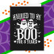 Esta design de aniversário de casamento de Dia de as Bruxas engraçado é perfeita para um casal casado celebrando 8 anos de casamento para seu BOO! Diversão de design de casal para a festa de aniversário de casamento de outubro ou Halloween. Apresenta 'Casado com o meu BOO por 8 anos!' citação engraçada do 8.º aniversário com noiva e fantasmas do noivo e gráficos de morcego. Perfeito para um aniversário de casamento de Halloween, aniversário de casamento de outubro ou qualquer festa de aniversário de casamento de 8º ano!