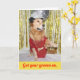 Este cartão caracteriza um golden retriever vestido em um equipamento do disco com uma camisa sequined, o chapéu, e um afro. Uma bola do disco está pendurando próximo. O texto lê, "obtem seu sulco sobre." e "espere que seu aniversário é distante para fora!".