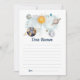 Celebre o marco especial do seu filho com este cartão de aniversário mágico do tema do espaço exterior. Um complemento perfeito para a festa de aniversário do seu pequeno! Seus convidados podem escrever uma mensagem pessoal. Apresentando planetas imaginários, luas e estrelas em marinho e mira dourada. Estas estrelas e placas de planeta galáxia solar galáxia solar de Aniversário do Espaço Exterior são perfeitas para uma simples festa de aniversário. O moderno design whimsical mostra um fundo de marinho-azul-aquarela adornado com um sol vibrante amarelo, lua de cinza sorridente, planetas de cor pastel e estrelas de brilho dourado dispersas.