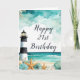 Belo cartão de aniversário com um farol preto e branco náutico, estrelas-do-mar e conchas. Perfeito para uma festa de aniversário. As palavras podem ser alteradas para se adequarem aos seus próprios detalhes ou requisitos