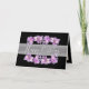Lindos montes roxos e rosa de crocos contra fundo preto. As flores rodeiam o texto de saudação de aniversário que usa uma fonte de tipografia de script atraente contra uma faixa branca translúcida. As flores cobrir a frente deste cartão que pode ser usado como cartões de agradecimentos, cartão de aniversário ou qualquer outro cartão de sua escolha. Personalize-o com o seu texto e/ou imagens para torná-lo de um tipo!