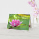 Este cartão de aniversário caracteriza um lírio de água cor-de-rosa requintado que descansa em almofadas de lírio verdes circulares. As reflexões douradas luminosas da água incandescem entre as almofadas desta lagoa bonita. Dentro de são os lírios de água pequenos. O texto pode ser personalizado para serir suas necessidades.