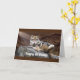 Imagem incrível de um lobo descansando em um tronco, é apresentada neste cartão de saudação de aniversário. Na frente do cartão lê-se: "Feliz Aniversário"! "Que o seu aniversário e o ano que vem sejam abençoados com a paz e a maravilha", diz dentro. Um cartão de excelente para enviar à família ou amigos masculinos para o dia especial! Feito e impresso nos EUA.
