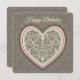 Um cartão de aniversário elegante de ornamentado com um belo coração, cheio de um delicado padrão de estilo William Morris como um lugar. Acima do coração está o texto personalizado Happy Birthday em um guião elegante e fluente (Excelente Vibes). A paleta colorida é bege, rosa e marrom (tons claros de bege e rosa contrastados com tons mais escuros e poeirentos de marrom). Do lado de trás está uma mensagem de aniversário doce de preferencialmente: Os mais amáveis desejos de aniversário estão vindo de você! Os remetentes padrão são Patricia & Martin. Um cartão de aniversário de excelente para familiares e outras relações importantes. Personalize o cartão de aniversário simplesmente digitando sobre o texto de exemplo. Se você quiser, pode mudar a cor de quase todos os detalhes do design. Basta clicar em 'Personalizar' para usar o editor e abrir os grupos com os arquivos vetoriais.