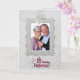 Clássica elegância para um aniversário de 25 casamento com tom em fundo de cinza de prata e fronteira com sotaque de arco. Personalize com sua foto para convite, salve o anúncio de data ou parabéns. A frente da placa também pode ser adicionada ao álbum de memória depois da data como uma manutenção.