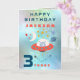 Enviar desejos de aniversário de fãs do espaço de 3 anos com esta design colorida de uma nave espacial com um dentro de alienígena giro com lua e estrelas sobre fundo aquático em tons de lacaio, azul e verde. Personalize facilmente o texto de acordo com as suas necessidades.