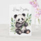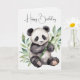 Urso panda de aquarela bonito com folhas de bambu para o aniversário.