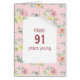 O antigo bouquet de rosa de aquarela cor rosa em fundo cor-de-rosa para 91 anos de rua. A cor de fundo pode ser alterada. A idade de aniversário é editável.