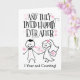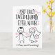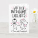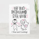 Parabéns a alguém pelo seu aniversário de casamento com este cartão exclusivo em estilo de lettering manual, apresentando a mensagem "E eles viveram felizes para sempre. (Número de anos aqui) Anos e contando!" O design inclui uma ilustração divertida em estilo giz de noiva e noivo com buquê, flores e corações em fundo branco. Espaço reservado dentro do coração para o número de anos (altere este número de acordo com as suas necessidades e altere o número no subtítulo abaixo para combinar). O interior contém esta mensagem, mas pode ser personalizado com a mensagem que desejar (altere também o número de anos no interior para atender às suas necessidades).