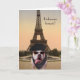 Cartão customizável com um cão de Bull em uma boina (BadDogHats.com) na frente da torre Eiffel (PublicDomainPictures.) Você pode personalizar. Agora na parte externa diz você fala o francês? Dentro dele diz o feliz aniversario. Você pode ir ao googletranslate e obter uma outra frase francesa. Você pode mudar o texto, as pias batismais, o tamanho de pia batismal e a cor da pia batismal. O cão de Bull é obrigados aos publicdomainpictures.