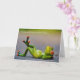 Um sapo verde engraçado com os olhos alaranjados brilhantes encontra-se em sua parte traseira na parte dianteira deste cartão de aniversário. A luz - o texto cinzento acima dele diz o "projecto de seu aniversário…" O interior diz "… e querendo saber apenas quantas velas nós podem obter nesse bolo, de qualquer maneira." Abaixo, no impressão menor é o texto "tem feliz!" Todo o texto pode facilmente ser personalizado, assim que você pode fazê-lo dizer o que quer que você gostaria. Bonito!