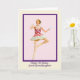 Uma dança nova da bailarina em seu traje cor-de-rosa e branco. Está vestindo as luvas brancas e uma fita branca está em seu cabelo.