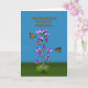 Uma imagem de fantasia realçada por flores de ervilha púrpura com pequenos rostos observando duas borboletas monarcas pairando faz um cartão de aniversário colorido e caprichoso. Personalize mudando o dentro para qualquer coisa que você quiser.