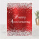 Cartão Aniversário feliz do Silver Glitter Red
