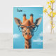 Uma girafa veste óculos de fundo preto-na moda contra um fundo azul macio dando-lhe um aspecto expressivo e caprichoso. O texto pode ser alterado.