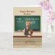 Um pássaro do guindaste do sandhill do bebê é vestido como um professor da física. Nesta imagem cómico em um cartão de aniversário para um irmão o pássaro veste vidros, um laço, e uma veste marrom terminada com uma corrente de relógio do ouro que dá a aparência de um professor ou de um estudante muito sério. Está na frente de um conselho de giz verde enchido com as equações científicas. Todos os campos do texto são modelos do texto e mudado facilmente ou suprimido.