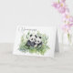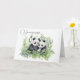 Trabalho de arte de aquarela de ursos panda bonitos em folhas de bambu para o aniversário de casamento. O texto é editável.