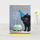 Cartão Aniversário para a mãe com gato preto e bolo