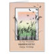 Cartão de aniversário para sua neta. Um belo cartão de aniversário mostrando gramíneas de prados e borboletas. Um pôr do sol de abstrato no fundo empresta uma atmosfera tranquila. Um adorável dentro de verso completa este cartão de aniversário para dizer "feliz aniversário".