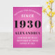 Um cartão de aniversário personalizado cor-de-rosa para aquele nascer em 1930. Personalize facilmente o texto na frente e no interior deste cartão de aniversário usando o modelo fornecido. Parte da faixa de padrões de configuração de cartões de saudação.