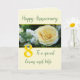 Cartão personalizável de aniversário de casamento para um primo e esposa especiais. Surpreenda o feliz casal no dia especial deles com esta rosa amarela. Você pode mudar o aniversário para qualquer ano para criar esse ano especial. Este cartão de aniversário também está disponível para outras relações familiares, em algumas línguas não inglesas e como cartão geral.