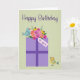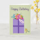 Cartão Aniversário presente com aves e flores