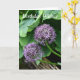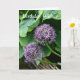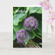 Cartão de aniversário com tema Floral que mostra a foto de um par de lindas flores roxas do Allium. Selecione entre um cartão de estilo mate ou brilhante.