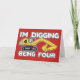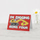 Deixe sua criança mostrar fora sua idade! Este cartão bonito diz, "eu estou escavando sendo quatro!" A família e os amigos obterão uma buzina fora deste design adorável.