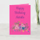 Um cartão de aniversário encantador e religioso, este item apresenta um fundo rosa, texto roxo, flores de aquarela. O dentro apresenta uma bela mensagem de Deus.Escolha o seu hoje!