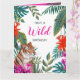 O verde-silvestre e o rosa têm um cartão de tigre de aniversário tropical selvagem.Arte original de Caroline Bonne Müller