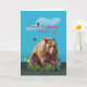 Esta imagem de fantasia mostra um urso sentado entre algumas flores coloridas enquanto uma borboleta monarca toca no nariz. Faz um cartão de cumprimentos de aniversário colorido. Personalize adicionando a alteração do verso dentro para atender às suas necessidades. As flores são da artista Dana Conditt, Design de Sucata Digital.