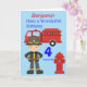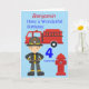 Desenho divertido de um bombeiro com o caminhão de bombeiros e hidrante. Este cartão seria um cartão divertido para enviar a qualquer criança que esteja fazendo aniversário e adore brincar com caminhões e figuras. A idade na frente e a idade no capacete podem ser alteradas para uma idade diferente, o nome no topo do cartão e a mensagem interna, que diz "Feliz Aniversário ..... Tenha um tempo Fantástico .... com amor de ...." podem ser alterados para personalizar o cartão.