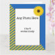 Cartão azul e amarelo com um girassol e um espaço para carregar sua própria foto. Feliz Aniversário dentro.