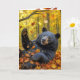 Cartão Aniversário Urso Negro Rolando Em Folhas De Outono