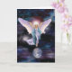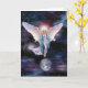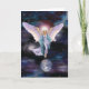 Anjo fêmea que emerge da galáxia e acima da terra no espaço com a luz da verdade à disposição. Usado pela virtude de Doreen para o cobrir da plataforma de cartão do anjo. Por Daniel B. Holeman.