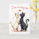 Black and white cat are slow dancing with each other with hearts around them isolated on white.