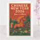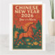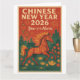 Cartaz de viagem em estilo retrô festivo do Ano Novo Chinês para 2026, celebrando o Ano do Cavalo.