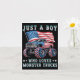 Cartão Apenas um menino que ama caminhões monstro bandeir