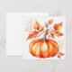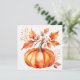 Cartão Aquarela Abóbora Laranja e Folhas de Outono