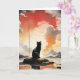 Retrato aquarela de gato preto com céus vermelhos, amarelos, cinzas. Cartão de saudação em branco para aniversário, aniversário de casamento, novo bebê, agradecimento, simpatia, etc.