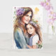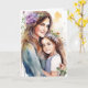 Lindo ilustração de uma mãe e filha com flores roxas em sua aquarela de cabelo, ai art. Feliz cartão de Dia de as mães com uma mensagem personalizada na dentro.