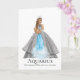 Ilustração de Moda de Deusa Aquário - Aquário Zodíaco com Urso Água. Este belo cartão de aniversário do Aquarius mostra o símbolo do sinal do ar, uma mulher vazando água de um jarro. A ilustração apresenta uma bela fêmea em um vestido de cinza prateada com uma tiara prateada. Este cartão de aniversário personalizado daria um excelente presente. Perfeito para os aniversários de janeiro e fevereiro.