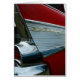 Uma foto baixa e próxima do lado de um clássico ar de Chevy Bel Air vermelho e branco da retaguarda, capturando aquela barbatana incrível!