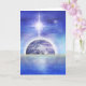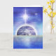 Imagem azul da Terra submersa em água com estrela grande no céu acima. Por Daniel B. Holeman.