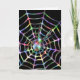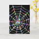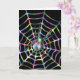 Um design preto de halloween com uma aranha colorida e colorido arco-íris e teia de aranha. A aranha é uma viúva negra e está na sua teia. Este design moderno de halloween está sobre um fundo preto, que realmente faz o padrão da web se destacar.