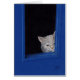 O archie, um champanhe coloriu o gato de gato malhado que olha através da janela vazia de uma porta antiga.