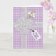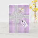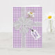 Arco branco com margarida branca e etiqueta de presente em um padrão de gingham branco e roxo. Todo o texto pode ser alterado.