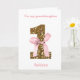Uma placa de primeiro aniversario bonito com uma brilho dourada número um com um arco de coquete rosa. Por favor, note que não há brilho real, mas um efeito de design de brilho. Você será capaz de personalizar facilmente a frente com o destinatário e o nome da aniversariante em cor rosa suave. Há um doce dentro de mensagem de aniversário, que também pode ser personalizado. A parte traseira apresenta a mesma brilho dourada uma e arco onde você pode adicionar o ano abaixo dela. Isso faria uma pequena manutenção de aniversário para a aniversariante.